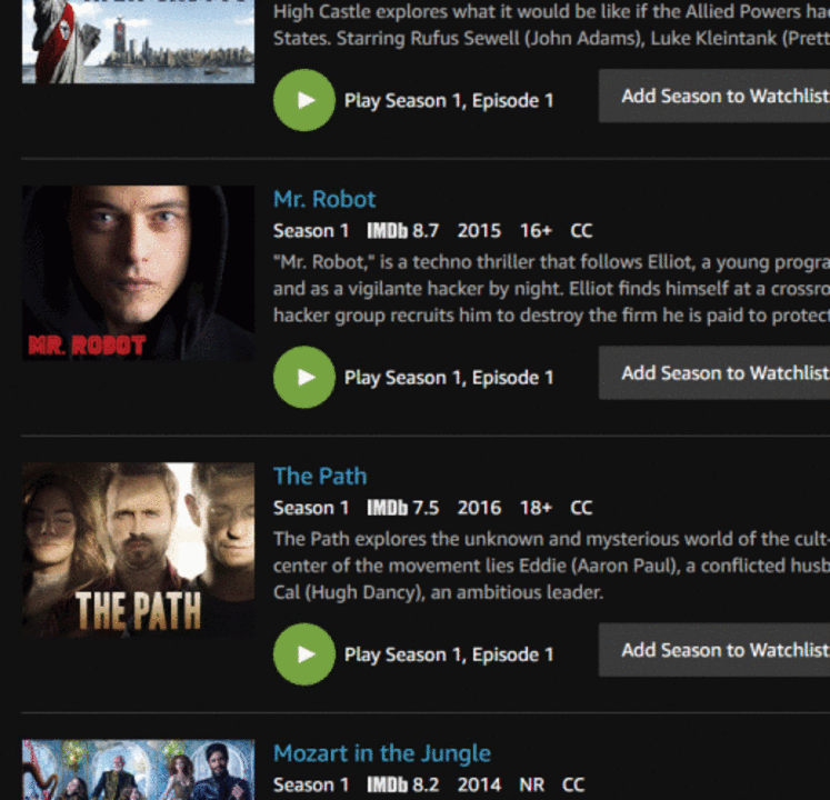 This satirical sitcom created by and starring tina fey was inspired by her experiences as head writer for saturday night live and ran for seven seasons, earning an astounding 103 primetime emmy award nominations and winning 16 times over the course of its run. Amazon prime is one of the best streaming platforms around, and it provides a vast range of popular tv shows, movies, and originals in all parts of the world. Scott fitzgerald's unfinished final novel. i have watched man in the high castle. What could be better than a twisty spy drama that will also teach you what household items make for the homemade explosives? Amazon has also integrated imdb ratings with the platform so for anyone who is more of prefers watching critically acclaimed stuff, they can if you want indian contents and you like bollywood, amazon prime video is good for you.